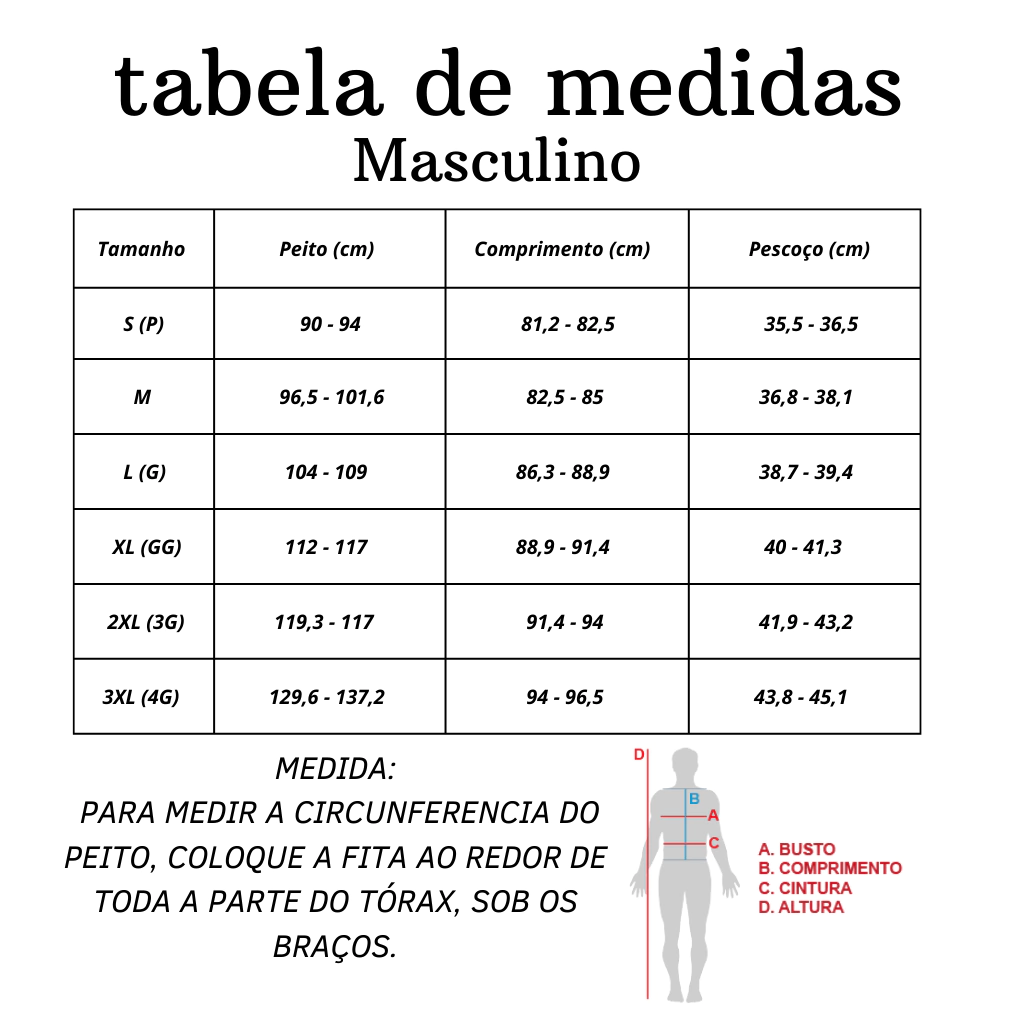 - Ajuste: Corte anatômico que se adapta ao corpo, garantindo liberdade de movimento.